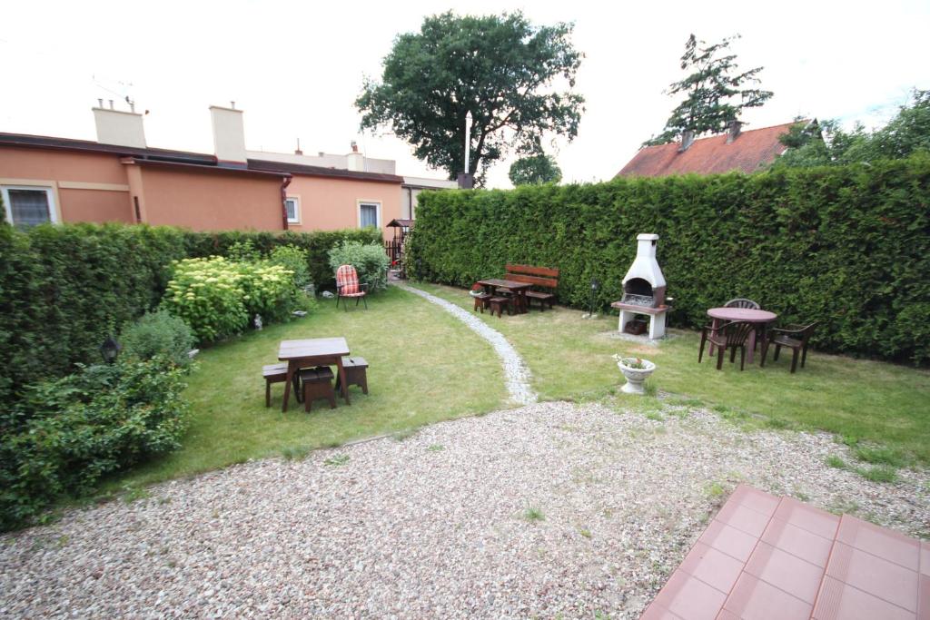 Obiekt oferuje bezpłatne Wi-Fi, prywatny parking oraz zadbany ogród z możliwością grillowania. Goście mogą korzystać również z tarasu, idealnego do wypoczynku na świeżym powietrzu.
